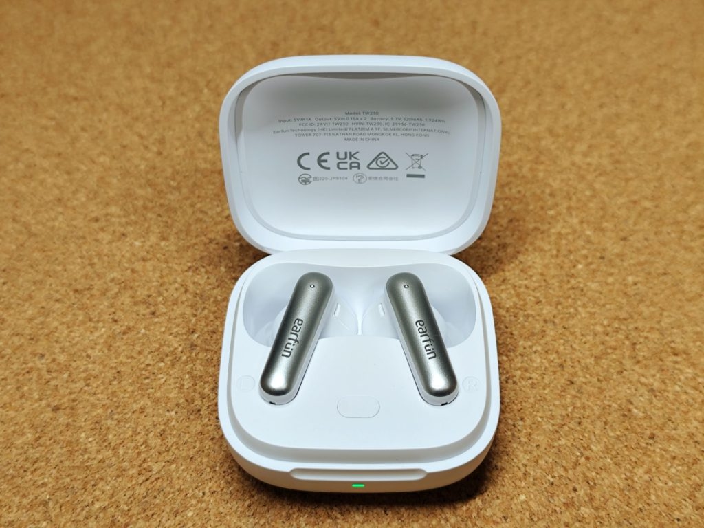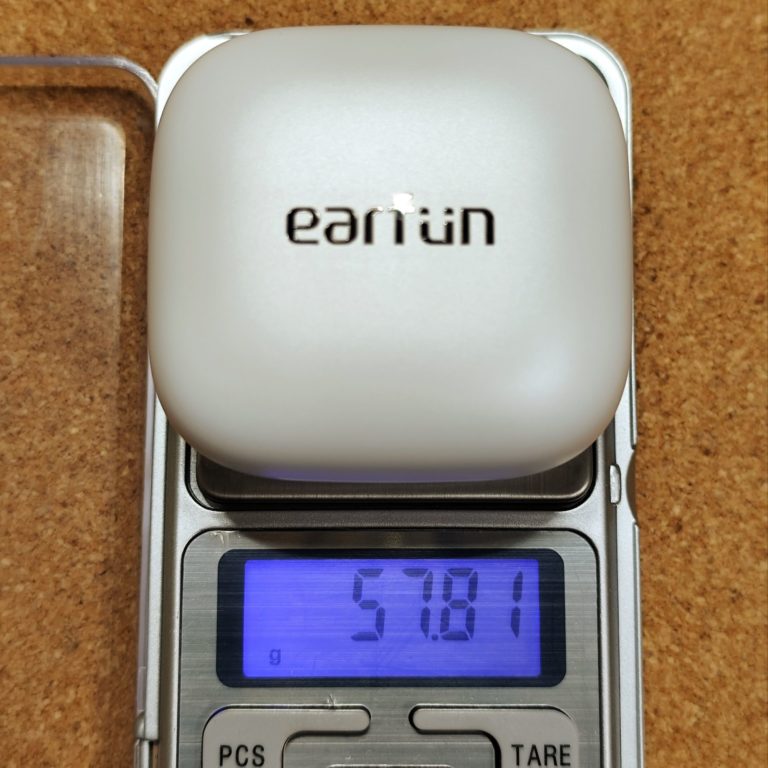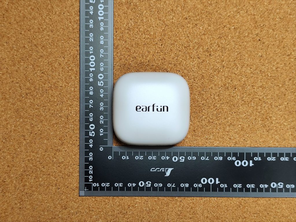 充電ケースはEarFunにしては珍しく、正方形に近い形をしています。表面はマット調の仕上げで、皮脂汚れなどは目立ちにくいでしょう。