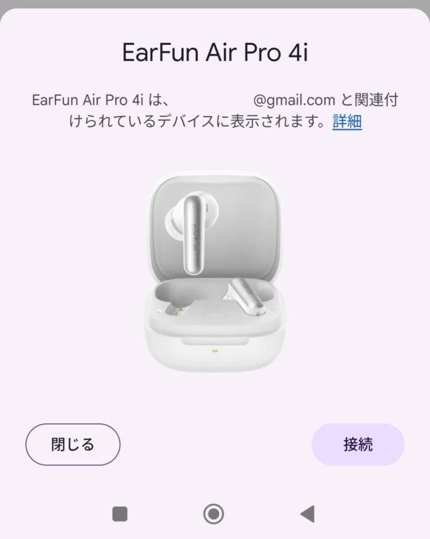 なお、本機は「Google Fast Pair」に対応しています。Android限定ではありますが、つなげたいスマートフォンの近くでふたを開けると、接続を促すポップアップが現れて、簡単に接続することができます。