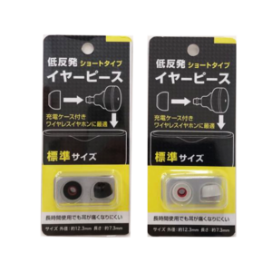 本機「完全ワイヤレスイヤホン(残量表示付)No.7468」の音質を確認するにあたっては、本機のイヤーピースがいまいちフィットしなかったので、イヤーピースを100円ショップ「セリア」で売っているat.qの「低反発イヤーピース ショートタイプ」に変更しています。