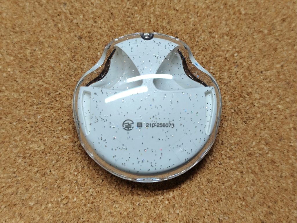 - イヤホン本体と充電ケースが一体化、クリア&ラメデザイン